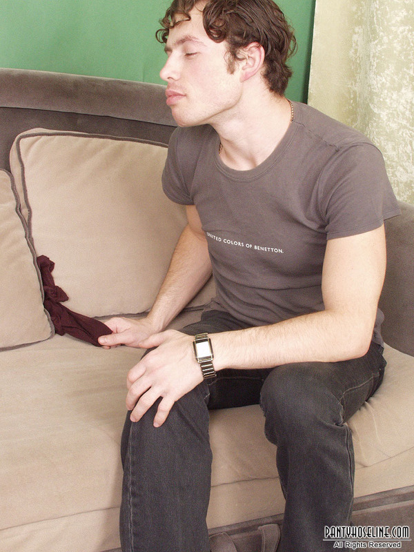 Sweet couple kissing through nylon pantyhose before frantic banging on sofa